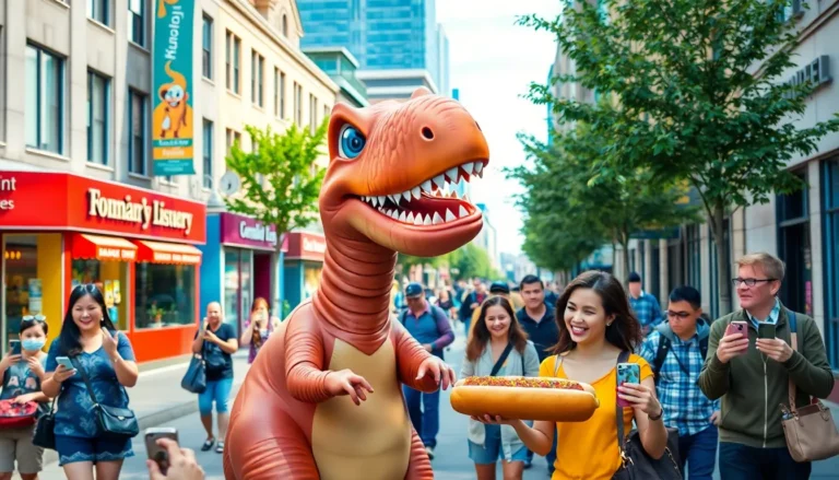 Imagine walking down the street and seeing a dinosaur casually munching on a hot dog right next to you. Sounds wild, right? That’s the magic